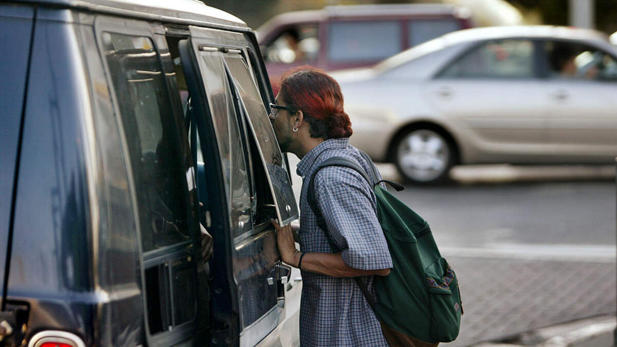 She ends up giving the driver directions on how to get out of there (all he needed).