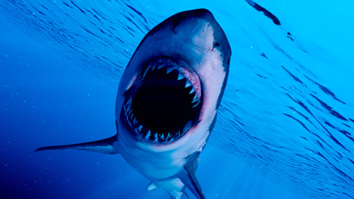 Well, don't try this at home...or I mean in the Ocean or well anywhere else. This is one brave soul. Copyright 2020 Getty Images
