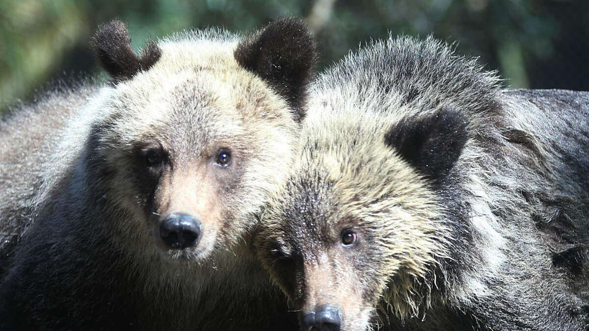 The footage shows the two bears meandering down a narrow street. After a few moments, Haha comes into view riding his scooter. When he rides up, he sees the bears . . . and immediately drops the scooter to run away.
