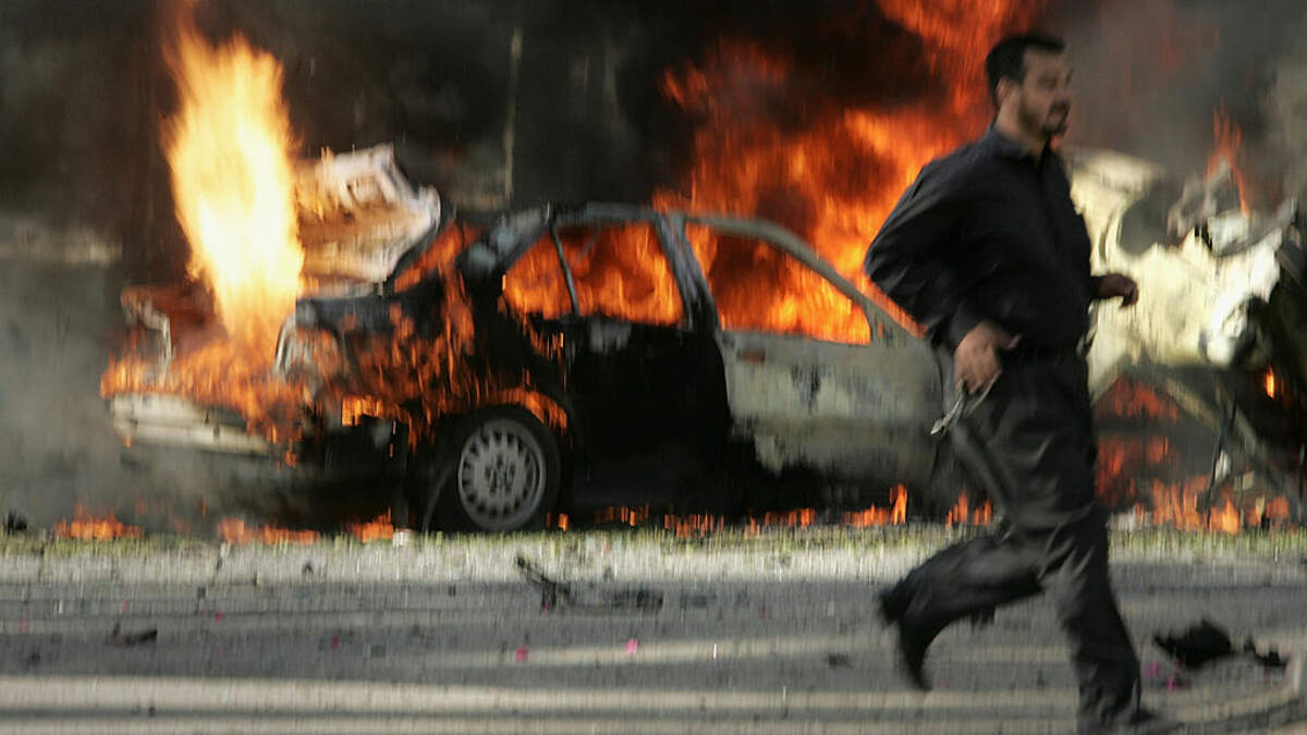 And his foot may have been stuck on the gas pedal because the tires were spinning and smoking. Several bystanders showed up to help, and one guy used a shovel to get into the car and turn the engine off. The driver only suffered minor injuries.