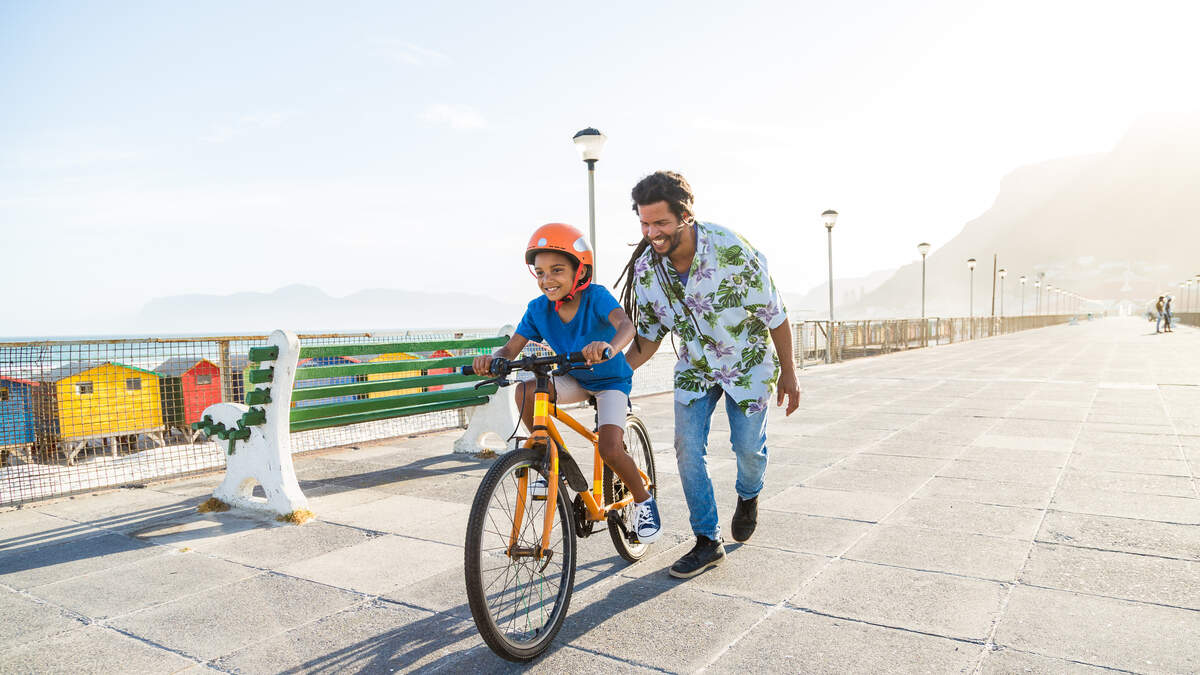 It's a boy thrilled that he just learned how to ride a bike. His dad asks if he has advice for other kids, and he launches into an inspiring speech as if he's in a movie.