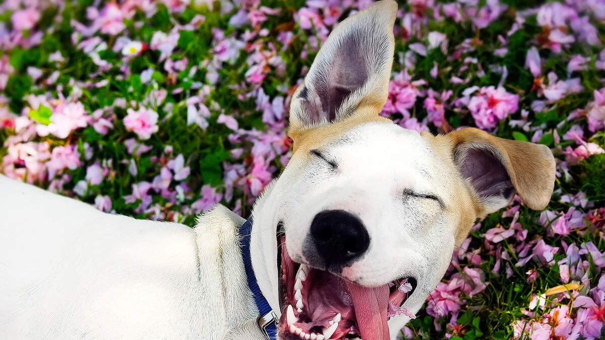 This dog knows how to diffuse a difficult situation. He's getting scolded by his owner for pooping in the house, and his response is to flash a "toothy smile."